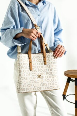 İmpolo Lori Empirme Baskı Krem Kamel Kadın Omuz Ve Kol Çantası 27×34 Ebatında