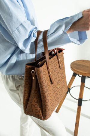 İmpolo Lori Empirme Baskı Kahve Taba Kadın Omuz Ve Kol Çantası 27×34 Ebatında