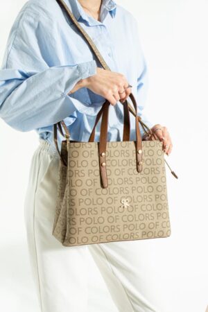 İmpolo Lori Empirme Baskı Vizon Taba Kadın Omuz Ve Kol Çantası 27×34 Ebatında