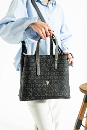 İmpolo Lori Empirme Baskı Siyah Gri Kadın Omuz Ve Kol Çantası 27×34 Ebatında