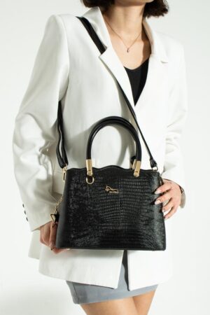 İmpolo Lori Empirme Baskı Siyah Kadın Omuz Ve Kol Çantası 27×34 Ebatında