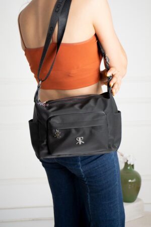 İmpolo buzi Saten Siyah Kadın Omuz Ve Çapraz Çanta 23×27 ebatında