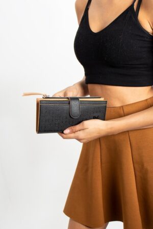 Impolo Selena Siyah Taba Kadın El Cüzdanı 10×20 Ebatında