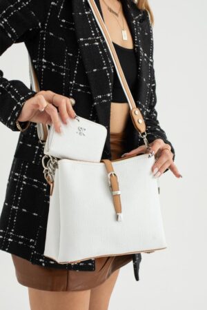 ImPolo Avesta Beyaz Kadın Kombin Çanta 22×25 Cüzdan 10×13 ebat