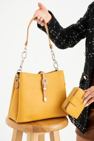 ImPolo Avesta Hardal Sarı Kadın Kombin Çanta 22×25 Cüzdan 10×13 ebat