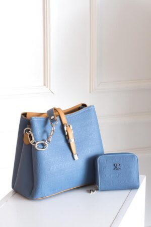 ImPolo Avesta Mavi Taba Kadın Kombin Çanta 22×25 Cüzdan 10×13 ebat