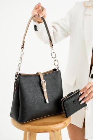 ImPolo Avesta Siyah Kadın Kombin Çanta 22×25 Cüzdan 10×13 ebat