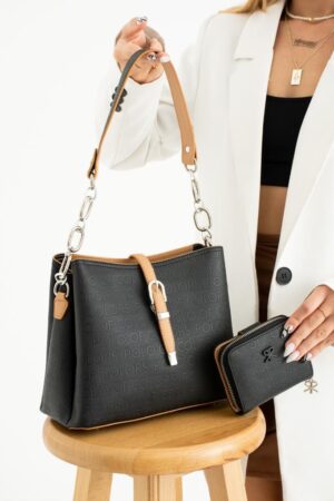 ImPolo Avesta Siyah Taba Kadın Kombin Çanta 22×25 Cüzdan 10×13 ebat