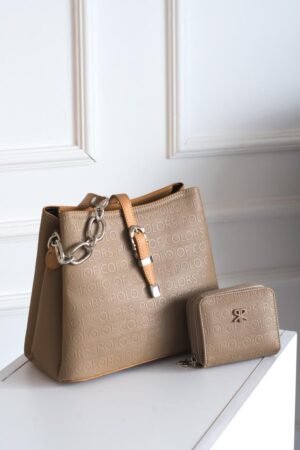 ImPolo Cemre Nora Krem Kamel Kadın Omuz Çantası Ve Cüzdan 22×29 Cüzdan 10×12 Ebatınad