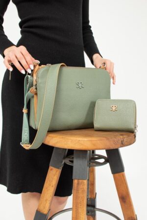 ImPolo Cemre Nora Yeşil Kamel Kadın Omuz Çantası Ve Cüzdan 22×29 Cüzdan 10×12 Ebatınad