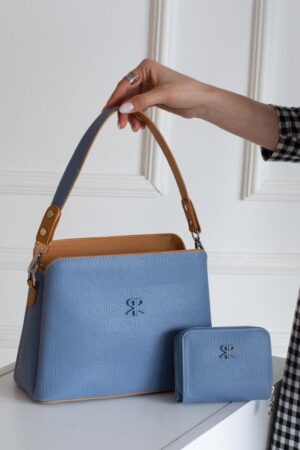 ImPolo Darin Mavi Taba Kadın Kombin Çanta 25×30 Cüzdan 10×13 Ebat