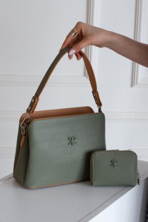 ImPolo Darin Yeşil Taba Kadın Kombin Çanta 25×30 Cüzdan 10×13 Ebat