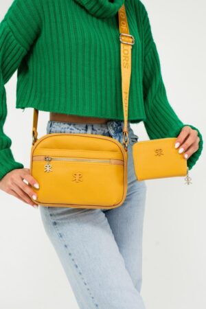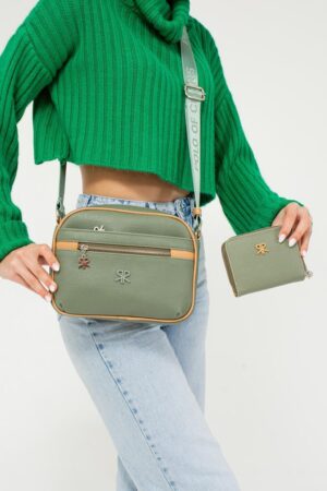 ImPolo Esta Nora Yeşil Kamel Kadın Kombin Çanta Ve Cüzdan Çanta 21×27 Cüzdan 10X13 Ebatlarında