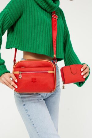 ImPolo Esta Nora Kırmızı Kamel Kadın Kombin Çanta Ve Cüzdan Çanta 21×27 Cüzdan 10X13 Ebatlarında