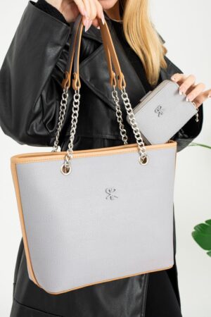 ImPolo Esta Nora Gri Kamel Kadın Kombin Çanta Ve Cüzdan Çanta 21×27 Cüzdan 10X13 Ebatlarında