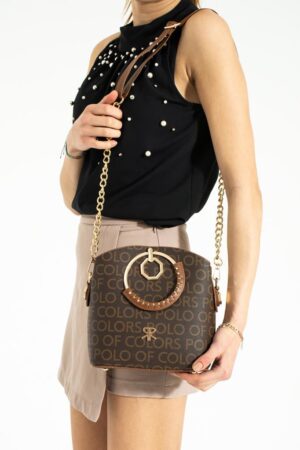 Impolo Sophia Çember Saplı Empirme Baskı Üç Gözlü Kahve Omuz Ve El Çantası 22×25 Ebat