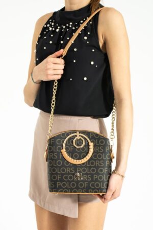 Impolo Sophia Çember Saplı Empirme Baskı Üç Gözlü Siyah Kamel Omuz Ve El Çantası 22×25 Ebat