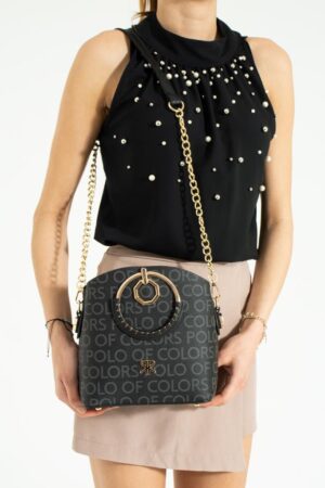 Impolo Sophia Çember Saplı Empirme Baskı Üç Gözlü Siyah Omuz Ve El Çantası 22×25 Ebat