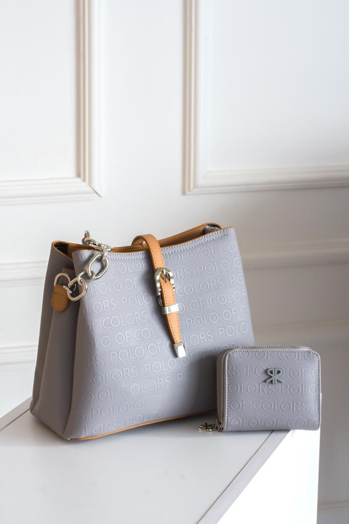 / ImPolo Avesta Gri Taba Kadın Kombin Çanta 22×25 Cüzdan 10×13 ebat