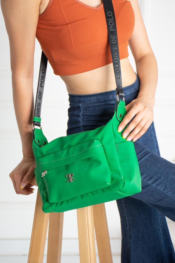 İmpolo buzi Saten Yeşil Kadın Omuz Ve Çapraz Çanta 23×27 ebatında