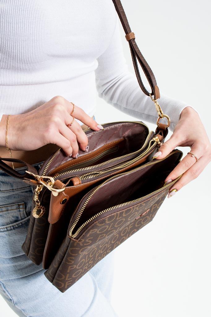 ImPolo Cemre Kahve Taba Empirme Baskı Kadın Omuz Çantası 22x29 Ebatında quantity