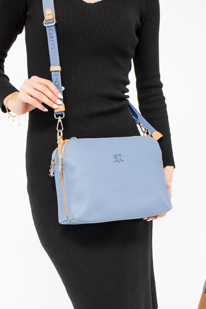 ImPolo Cemre Mavi Kamel Kadın Omuz Çantası 22×29 Ebatında