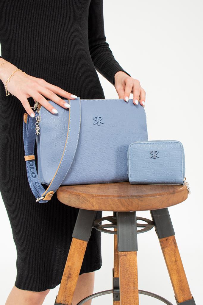 ImPolo Cemre Nora Mavi Kamel Kadın Omuz Çantası Ve Cüzdan 22×29 Cüzdan 10×12 Ebatınad