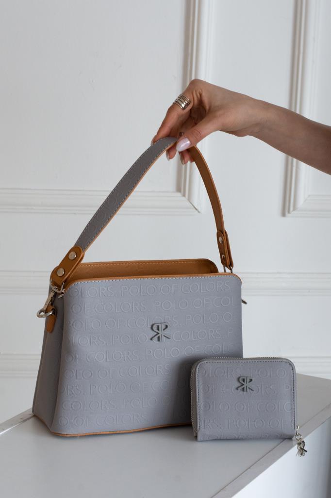 ImPolo Darin Gri Taba Kadın Kombin Çanta 25×30 Cüzdan 10×13 Ebat