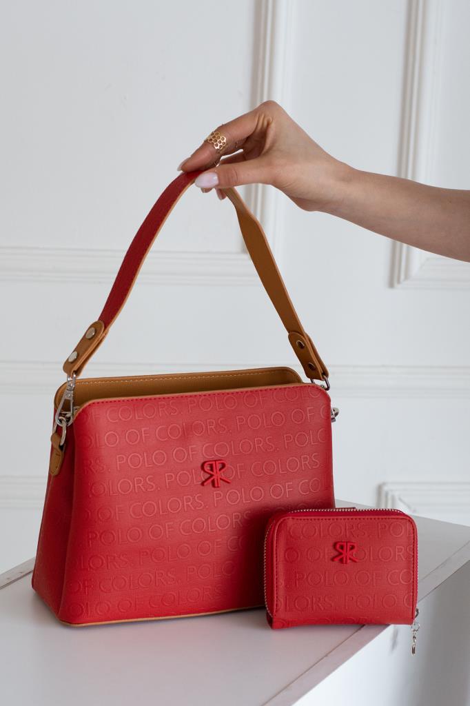 / ImPolo Darin Kırmızı Taba Kadın Kombin Çanta 25×30 Cüzdan 10×13 Ebat