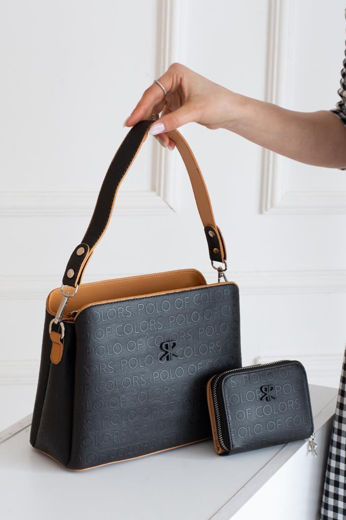 ImPolo Darin Siyah Kadın Kombin Çanta 25×30 Cüzdan 10×13 Ebat