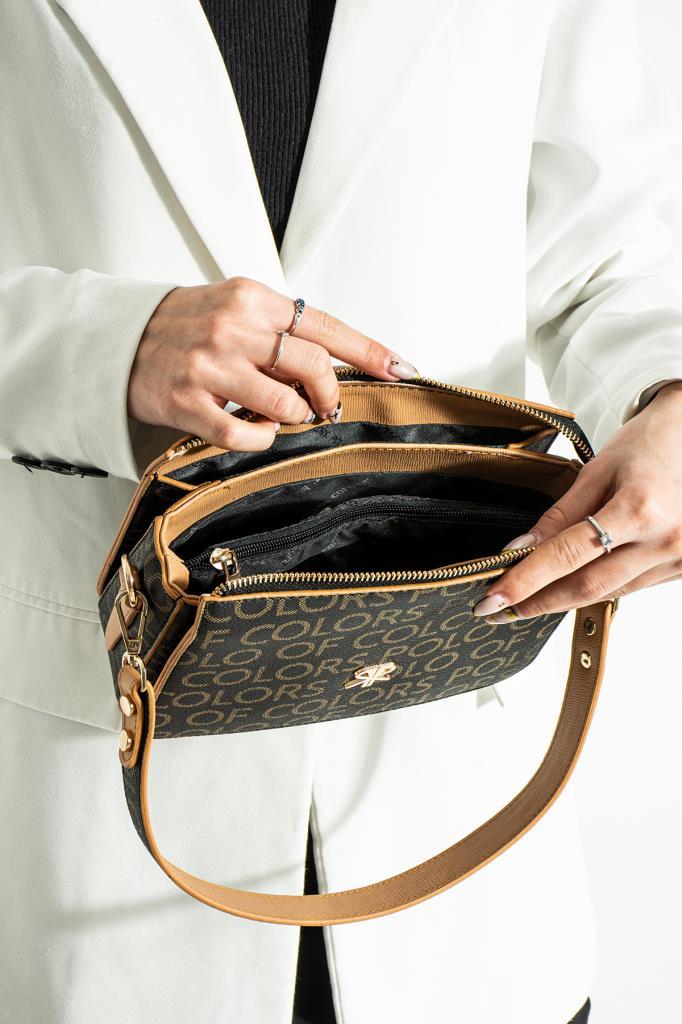 ImPolo Dayanna Empirme Baskı Siyah Kamel Kadın Omuz Ve Çapraz Çanta 16×22 ebat