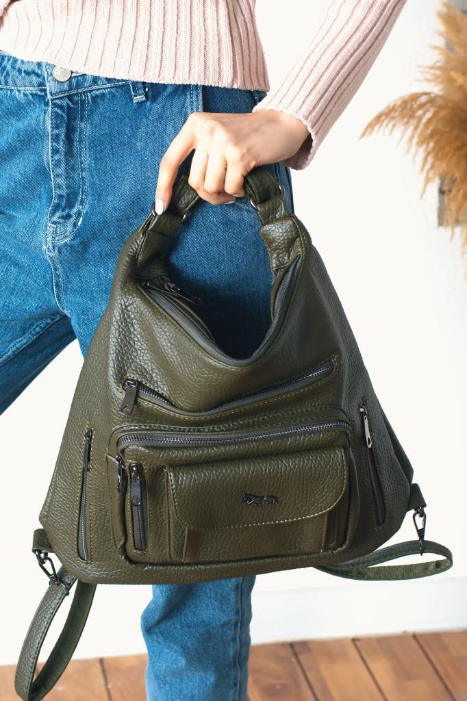 / ImPolo Delilah Çok Amaçlı Haki Yeşil Kadın Sırt Ve Omuz Çanta 36×43 Ebat