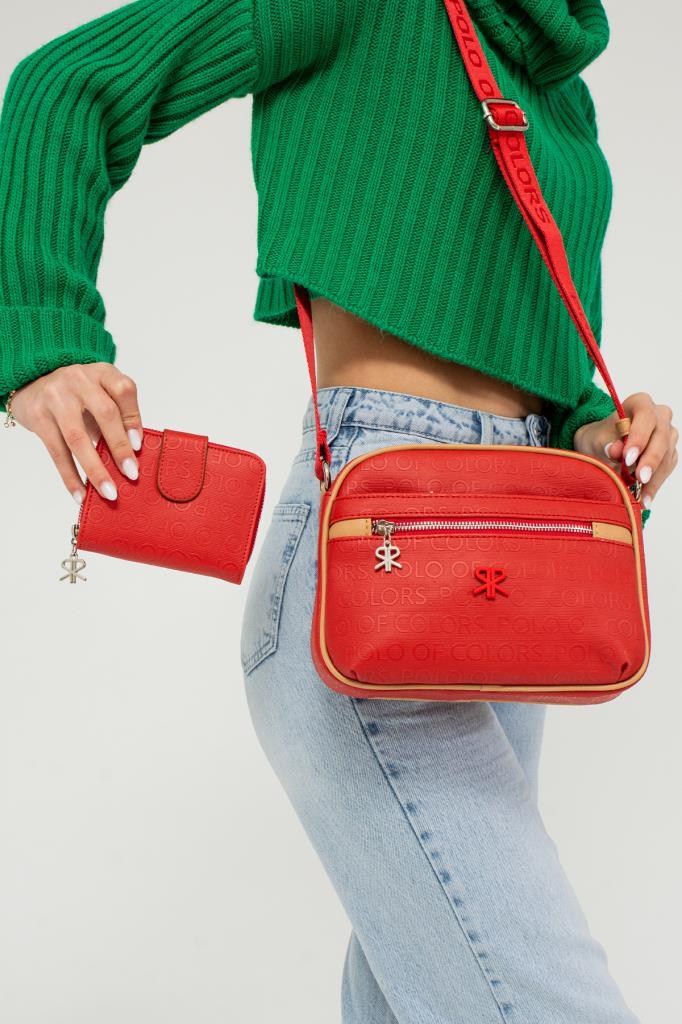 / ImPolo Esta Nora Kırmızı Kamel Kadın Kombin Çanta Ve Cüzdan Çanta 21×27 Cüzdan 10X13 Ebatlarında
