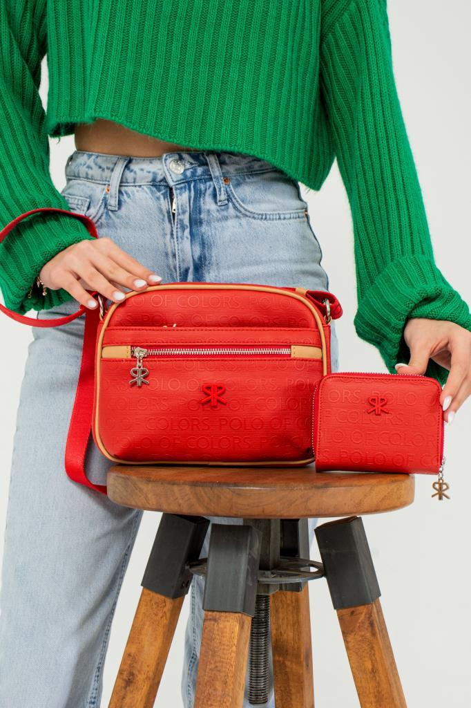 ImPolo Esta Nora Kırmızı Kamel Kadın Kombin Çanta Ve Cüzdan Çanta 21×27 Cüzdan 10X13 Ebatlarında