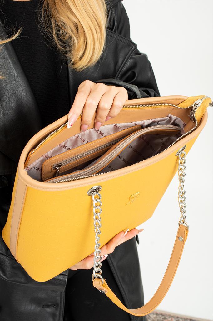 ImPolo Ida Hardal Sarı Kamel Kadın Omuz Çantası 38x26 Ebatında quantity