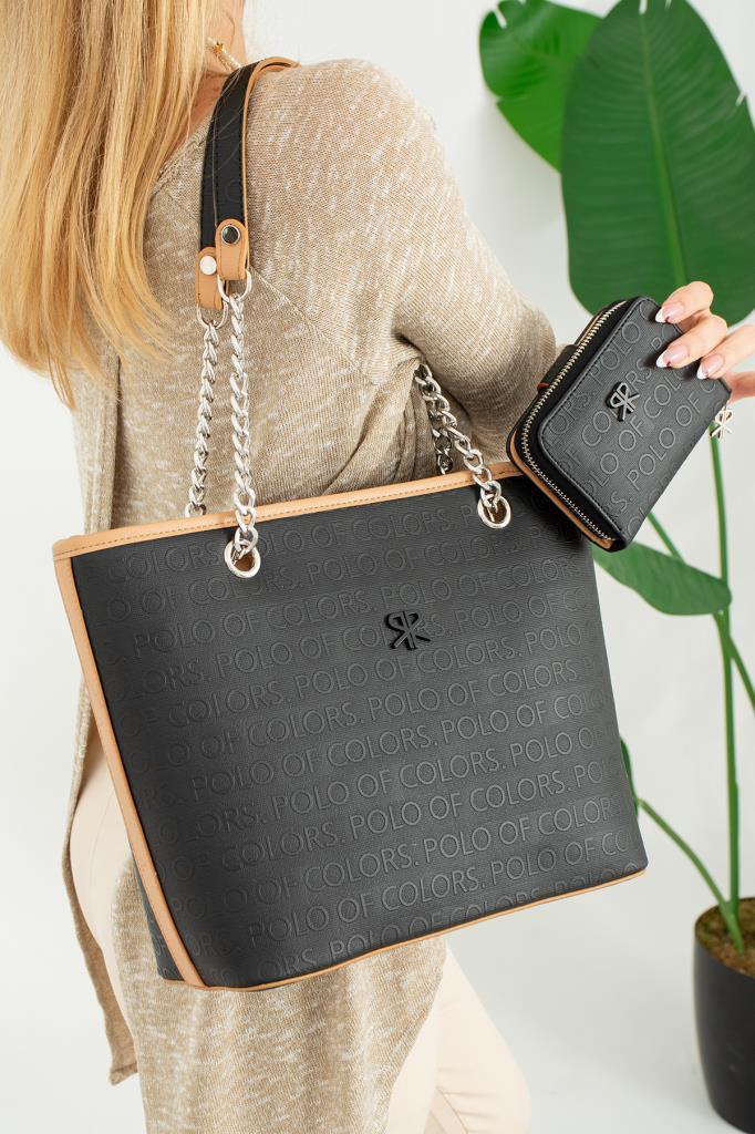 ImPolo Ida Nora Siyah Kadın Omuz Çantası Kombin Çanta26X38 Cüzdan10x20