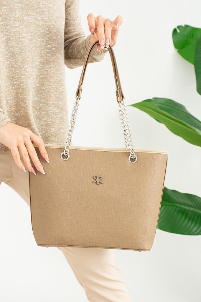 ImPolo Ida Nora Gri Kamel Kadın Omuz Çantası Kombin Çanta26X38 Cüzdan10x14