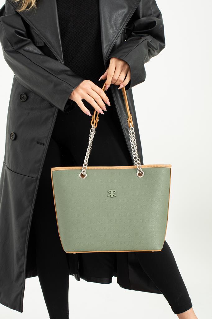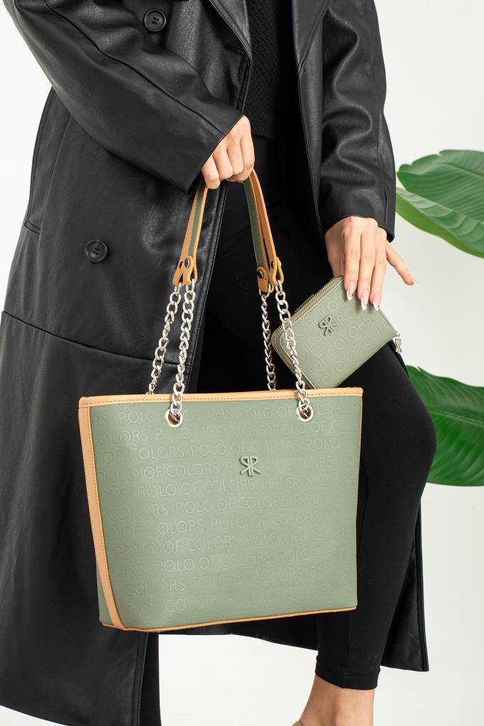 / ImPolo Ida Nora Yeşil Kamel Kadın Omuz Çantası Kombin Çanta26X38 Cüzdan10x25