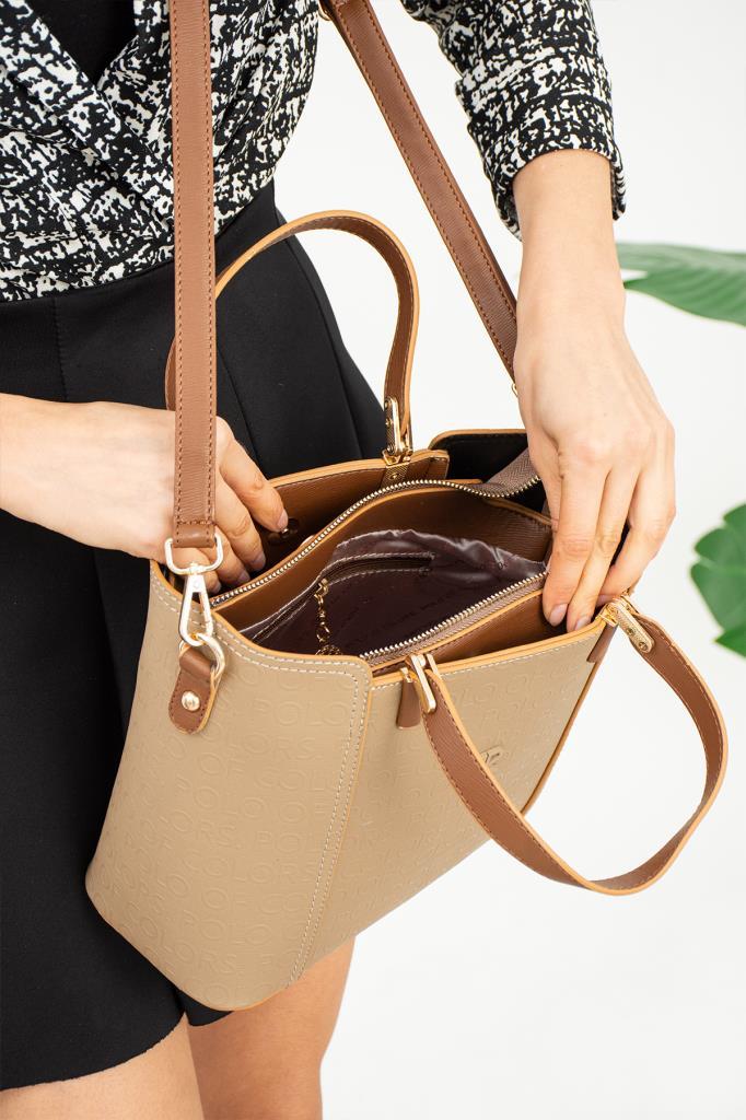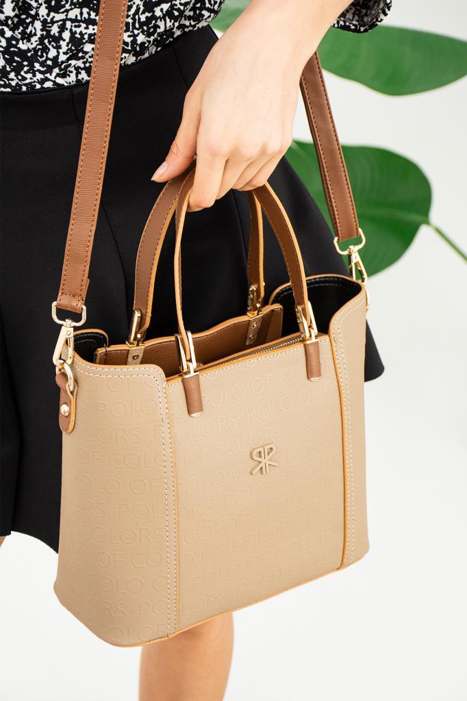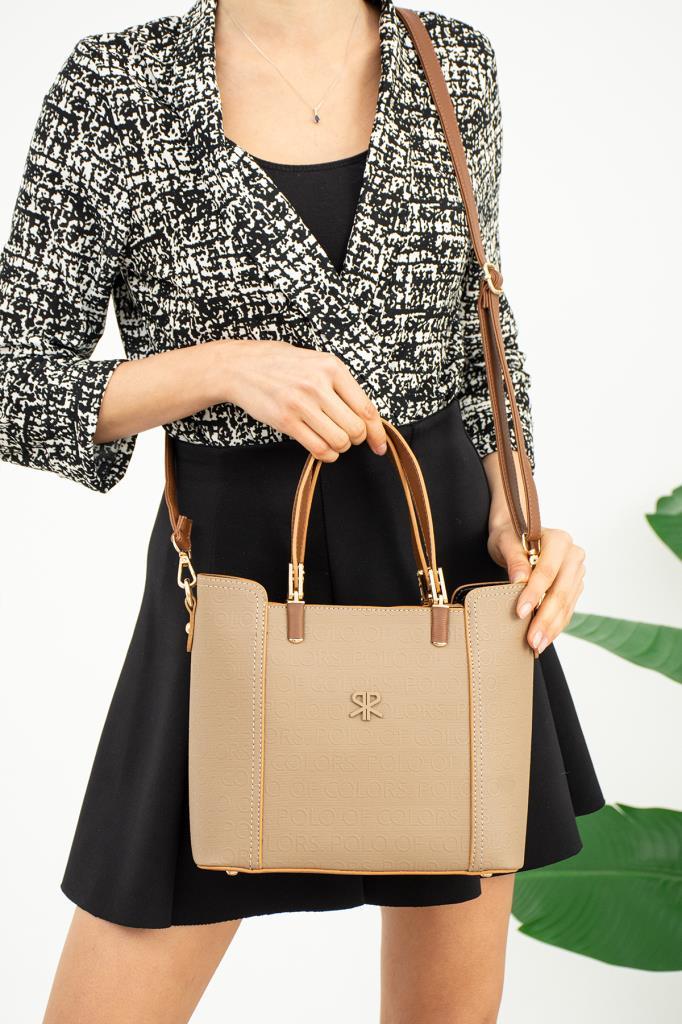 ImPolo Karina Krem KameI Gofraj Baskı Kol Ve Omuz Çantası 21×33 Ebat