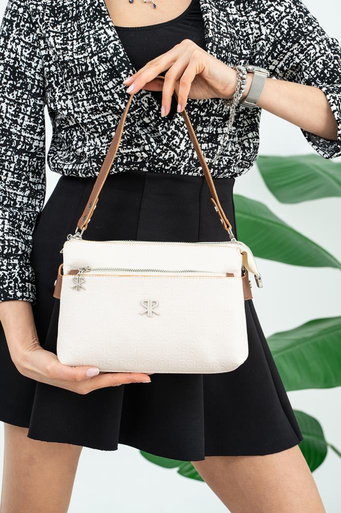 ImPolo leydi Beyaz Taba Kadın Omuz Ve Çapraz Çanta18x26 Ebatında
