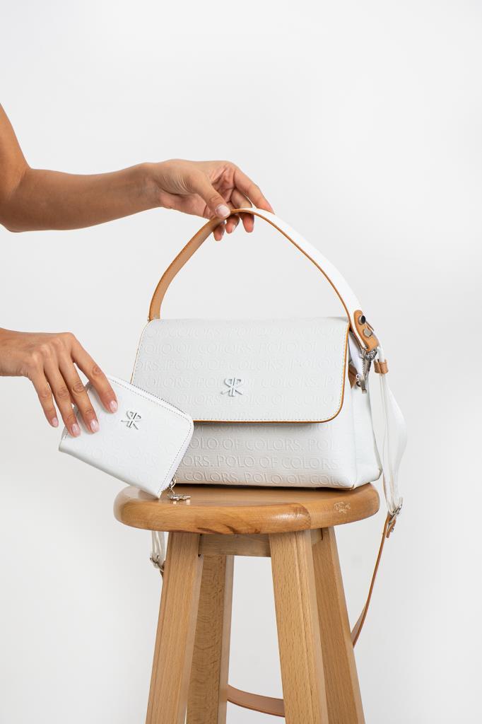 / Impolo Neomi Beyaz Kadın Kombin Çanta 22×26 Cüzdan 12X10 Ebat