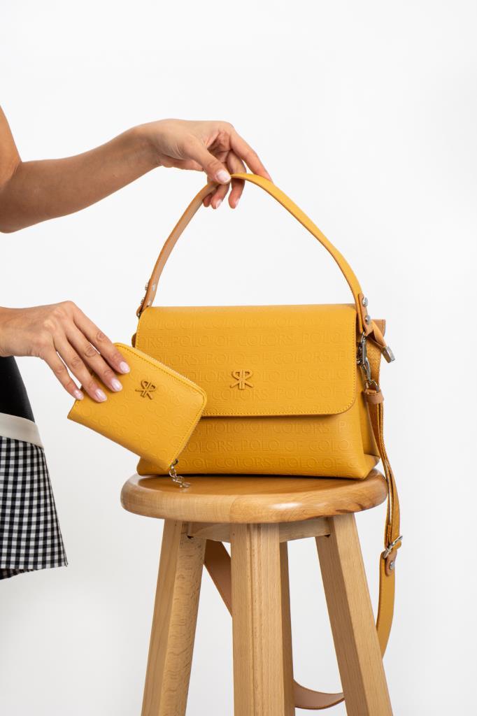 Impolo Neomi Hardal Sarı Kadın Kombin Çanta 22×26 Cüzdan 12X10 Ebat