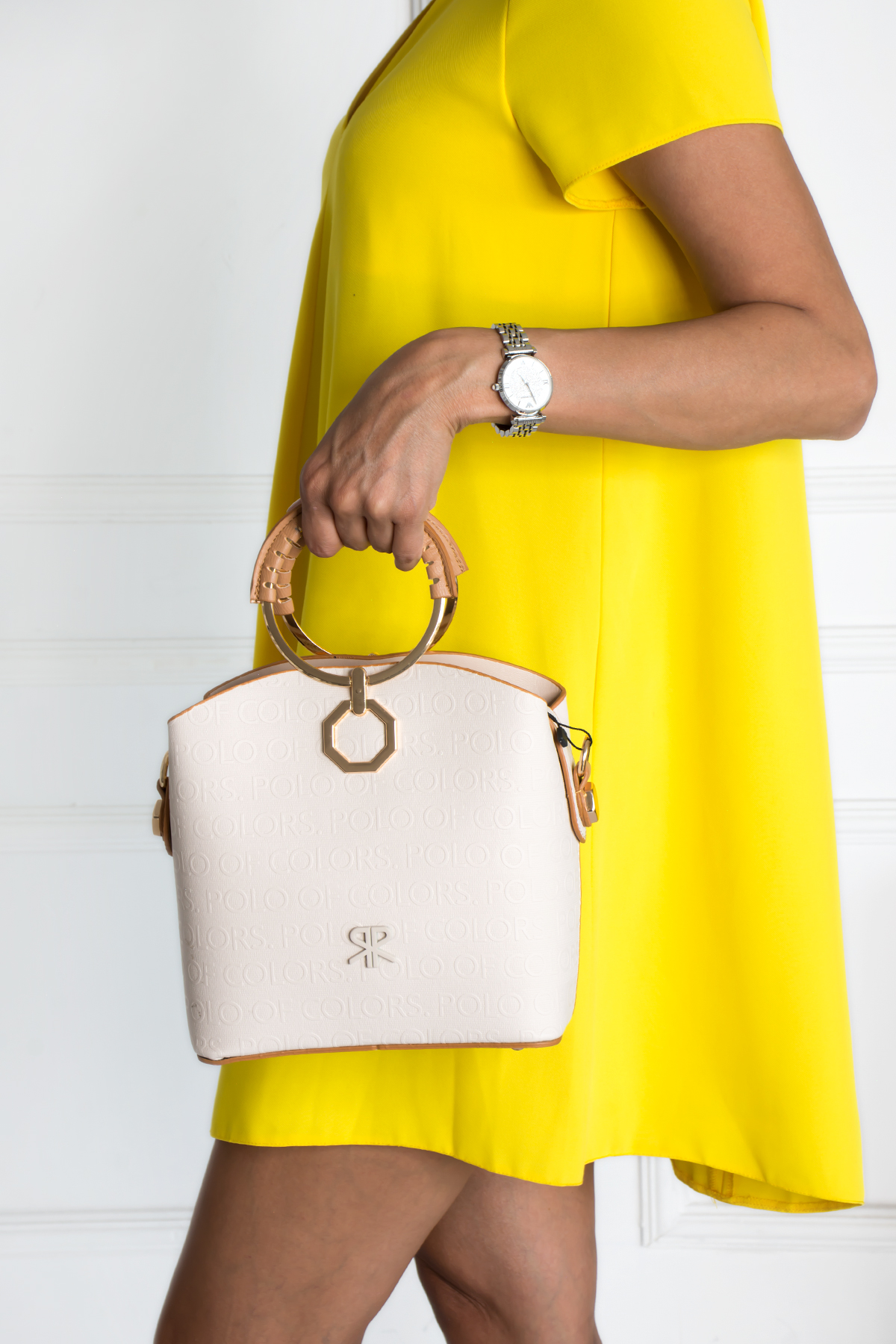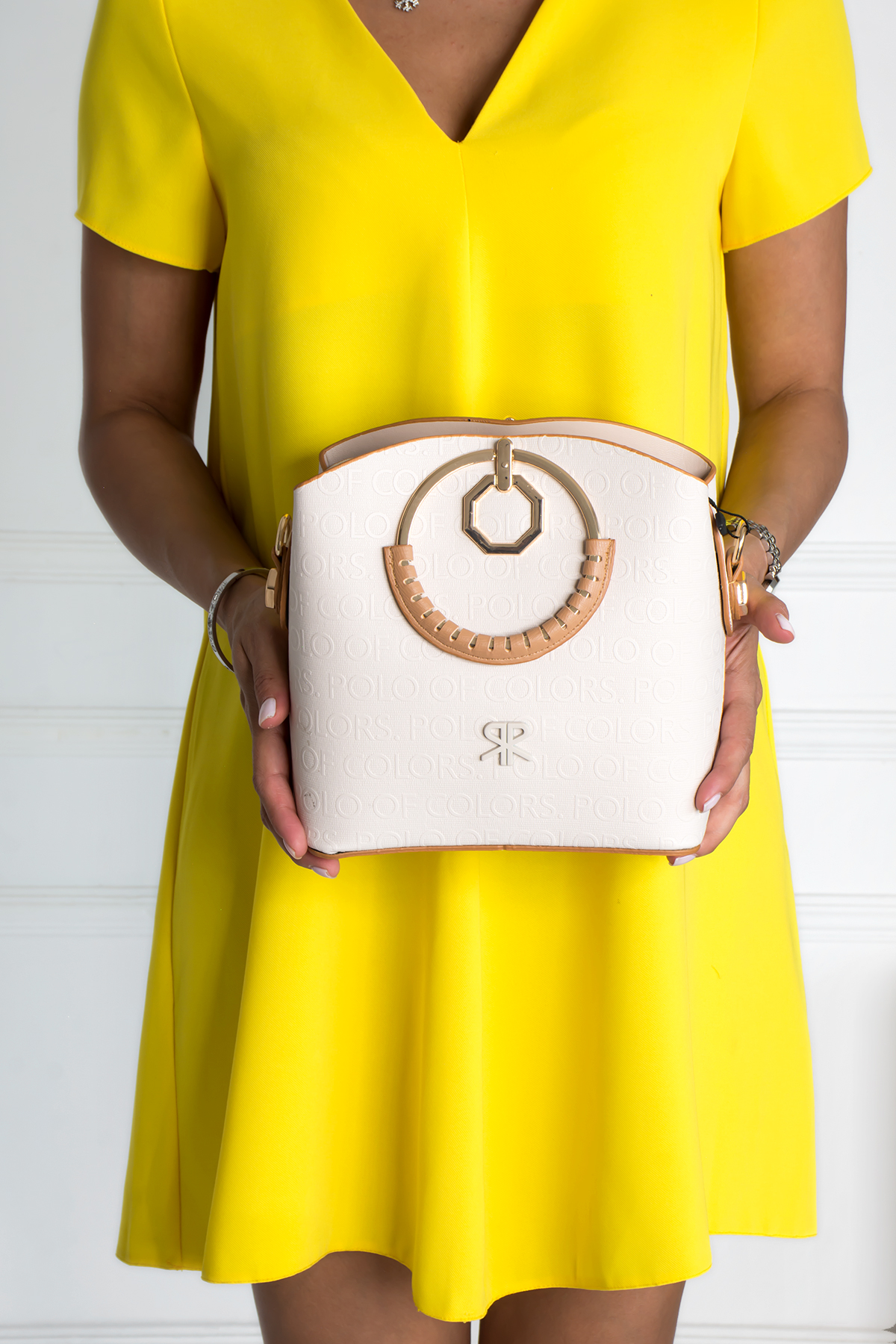 / İmpolo Sophia Çember Saplı Üç Gözlü P.Krem Omuz El Çanta 22×25 Ebat